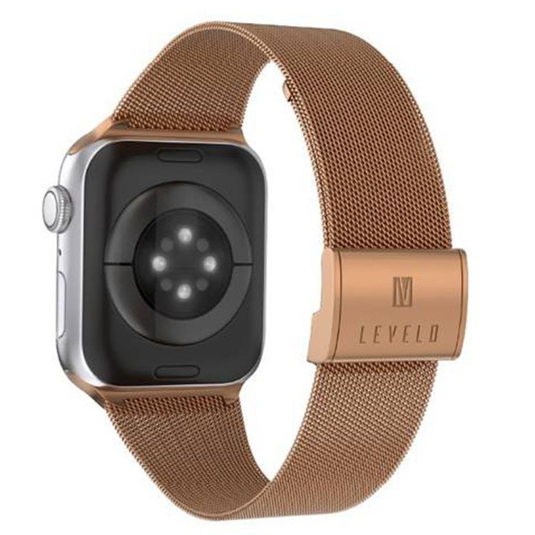 سوار ساعة Levelo Double Milanese لساعة Apple بمقاسات 38/40/41 مم، مصنوع من الفولاذ المقاوم للصدأ، بقفل طي مزدوج، سوار قابل للتعديل، سهل التركيب - لون ذهبي وردي