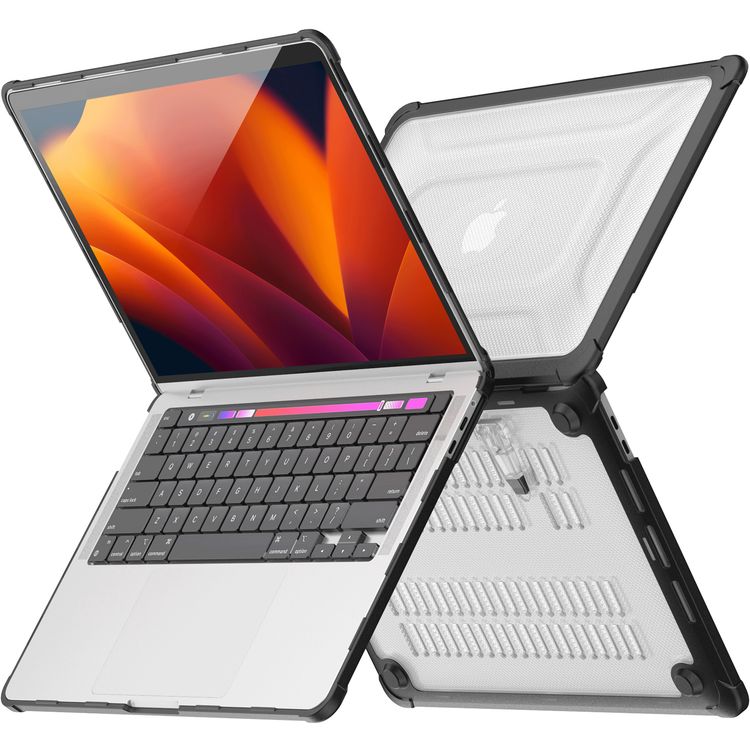 غلاف Levelo Espectro لجهاز MacBook Air 13.3" (2018-2020)، حماية كاملة 360°، تصميم بقاعدة قابلة للطي، فتحات تهوية مدمجة، حواف مقاومة للصدمات، سهل التركيب والإزالة - باللون الأسود