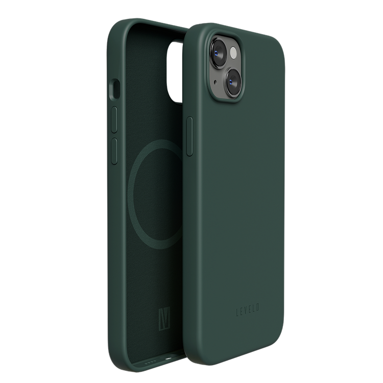 غطاء ليفلو آيريس سيليكون سائل متوافق مع تقنية ماغسيف لهاتف آيفون 14 بلس، متوافق مع ماغسيف، حماية للعدسة، حواف مقاومة للصدمات - أخضر داكن