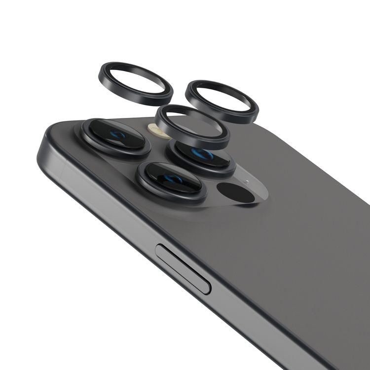 واقي عدسة الكاميرا Levelo Lucent Trio 9H Hardness (3 قطع)، متوافق مع iPhone 15 Pro Max / 15 Pro، مضاد لبصمات الأصابع والضبابية، صلابة 9H، حلقة محدبة - رمادي