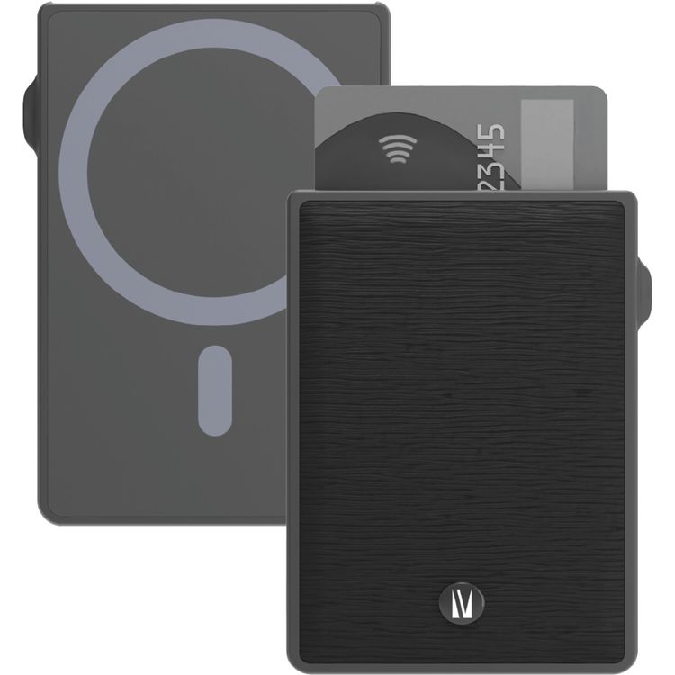 حامل بطاقات Levelo Lusso MagSafe مع مغناطيس MagSafe قوي، جلد PU سافيانو، 3 فتحات للبطاقات، زر منبثق للبطاقات - أسود