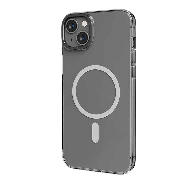 غطاء خلفي شفاف من Levelo MagSafe Sensa لهاتف iPhone 14 Plus، حلقة كاميرا معدنية، حواف مقاومة للصدمات، شفاف للغاية، سهل التركيب - شفاف / رمادي