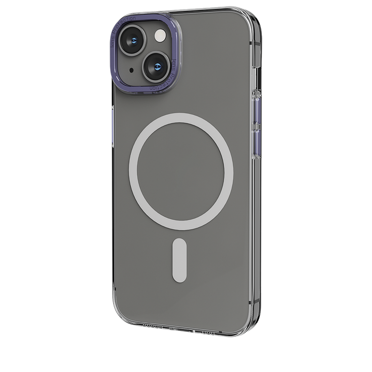 غطاء خلفي شفاف من Levelo MagSafe Sensa لهاتف iPhone 14، حلقة كاميرا معدنية، حواف مقاومة للصدمات، شفاف للغاية، سهل التركيب - شفاف / أرجواني
