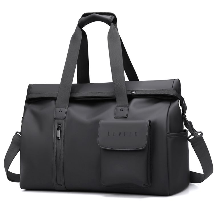 Levelo حقيبة سفر موناكو متعددة الاستخدامات، مع جيوب متعددة، مساحة واسعة، جيب أمامي، مقاومة للماء، داخلية فسيحة، تصميم محمول، مقاومة للماء، جلد PU - أسود