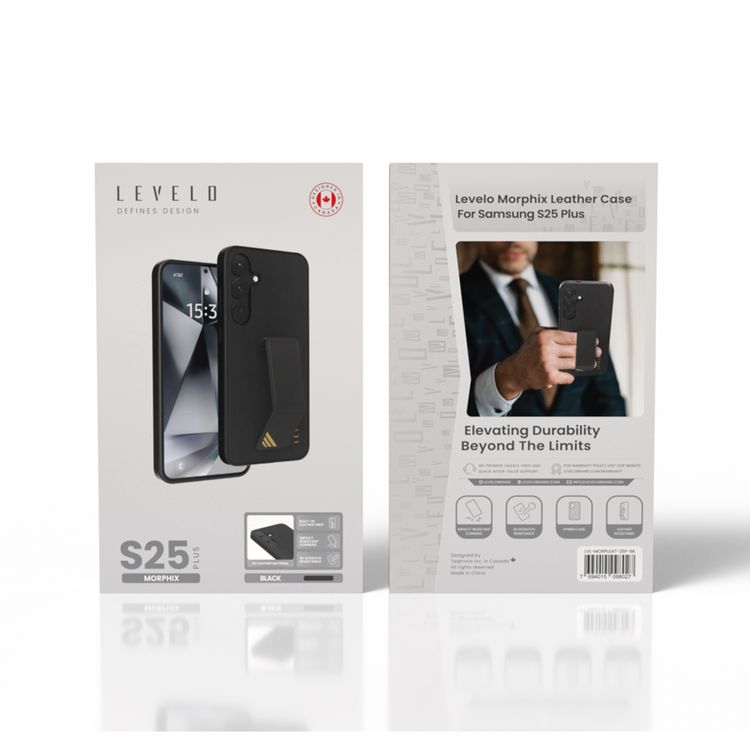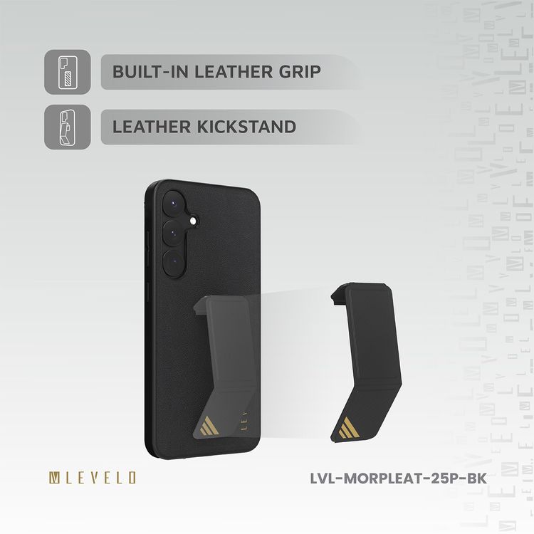 حافظة ليفيلو مورفيكس من جلد البولي يوريثان لهاتف سامسونج جالاكسي S25 بلس، مسند جلدي مدمج، مقاوم للخدش، زوايا مقاومة للصدمات، حافظة هجينة - أسود