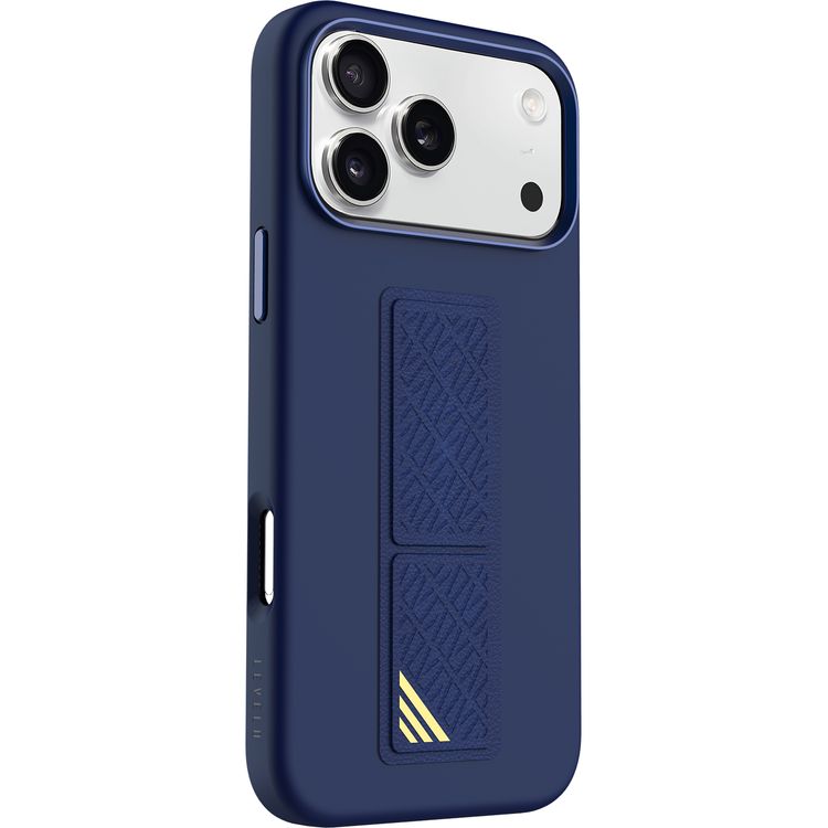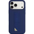 غطاء Levelo Morphix من السيليكون لهاتف iPhone 17 Pro Max، بمسند للعرض بدون استخدام اليدين، وبطانة داخلية من الألياف الدقيقة الأصلية، ومسند أفقي وعمودي، وواقي صدمات، وحواف بارزة لحماية الكاميرا والشاشة، وتصميم رفيع - لون أزرق داكن.