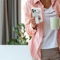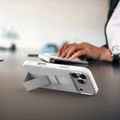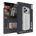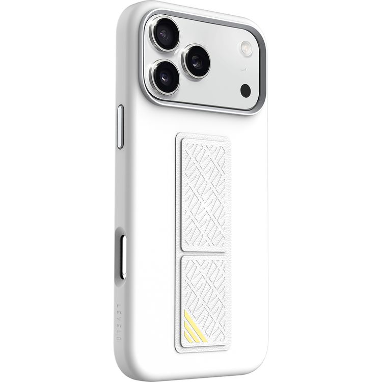 جراب Levelo Morphix Silicone GripStand لجهاز iPhone 17 Pro Max، للعرض بدون استخدام اليدين، بطانة داخلية من الألياف الدقيقة الحقيقية، حامل أفقي وعمودي، مصد مقاوم للصدمات، حواف مرتفعة للكاميرا والشاشة، تصميم نحيف - فضي