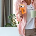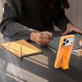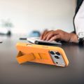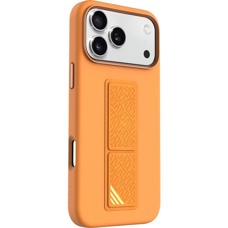 حافظة ليفيلو مورفيكس من السيليكون مع قبضة حاملة لهاتف آيفون 17 برو ماكس، عرض حر اليدين، بطانة داخلية من الألياف الدقيقة الحقيقية، حامل أفقي وعمودي، واقي صدمي، حواف مرتفعة للكاميرا والشاشة، تصميم نحيف - برتقالي