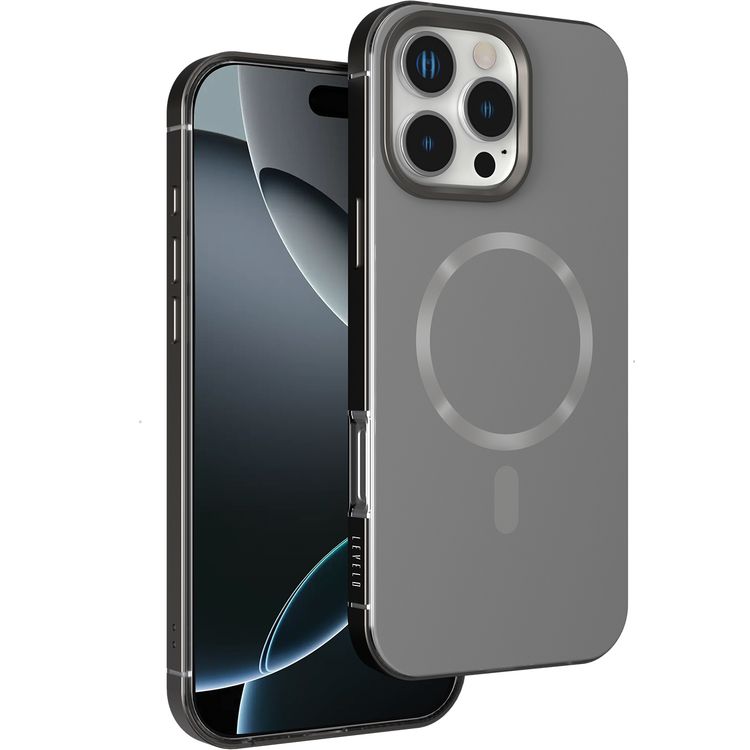 غطاء Levelo Opulis لجهاز iPhone 16 Pro Max، متوافق مع MagSafe، حلقة كاميرا معدنية، مضاد لبصمات الأصابع، مادة متينة، زوايا مقاومة للصدمات - رمادي