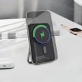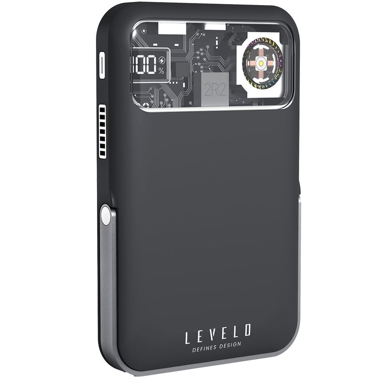 باور بانك ليفيلو أوساكا محمول بسعة 10000mAh مع شاشة LED، موزع حرارة، قدرة 20W PD، حامل مدمج، مادة بلاستيكية مطاطية - اللون الرمادي الداكن.
