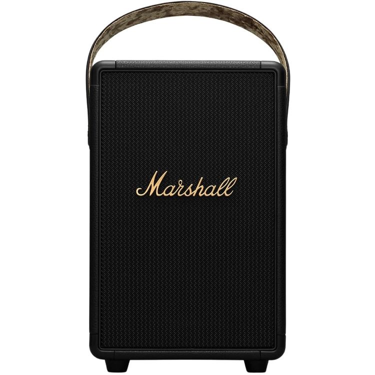 مكبر صوت بلوتوث لاسلكي محمول مقاوم للماء من مارشال توفتون، وقت شحن 2.5 ساعة، صوت متعدد الاتجاهات، متين - أسود/نحاسي