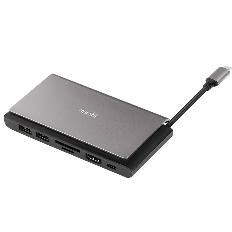 موشي MSHI-L-084275 موزع يو اس بي-سي محمول من Symbus Mini 7 في 1 ، HDMI مع 4KHDR ، توصيل طاقة 70 وات ، يو اس بي-سي / 2 يو اس بي-أيه 5 جيجابت في الثانية ، قارئ بطاقات ميكروSD / SD - رمادي فلكي
