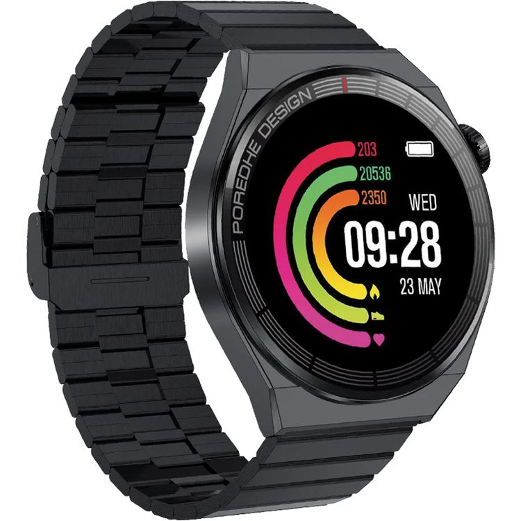 ساعة Pawa Elegance Amoled الذكية بشاشة لمس كاملة وشحن لاسلكي - أسود