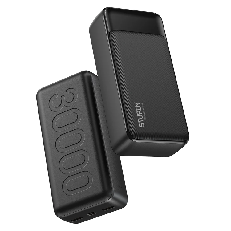 باور بانك باوا ستوردي 30000 مللي أمبير/ساعة مع توصيل طاقة 20 وات، شاشة رقمية، مدخل مايكرو ونوع سي، مخرج يو إس بي سي ومخرج يو إس بي إيه مزدوج، كابل نوع سي متضمن، شحن سريع، خفيف الوزن وقابل للحمل، شحن متزامن، حماية ذكية - أسود