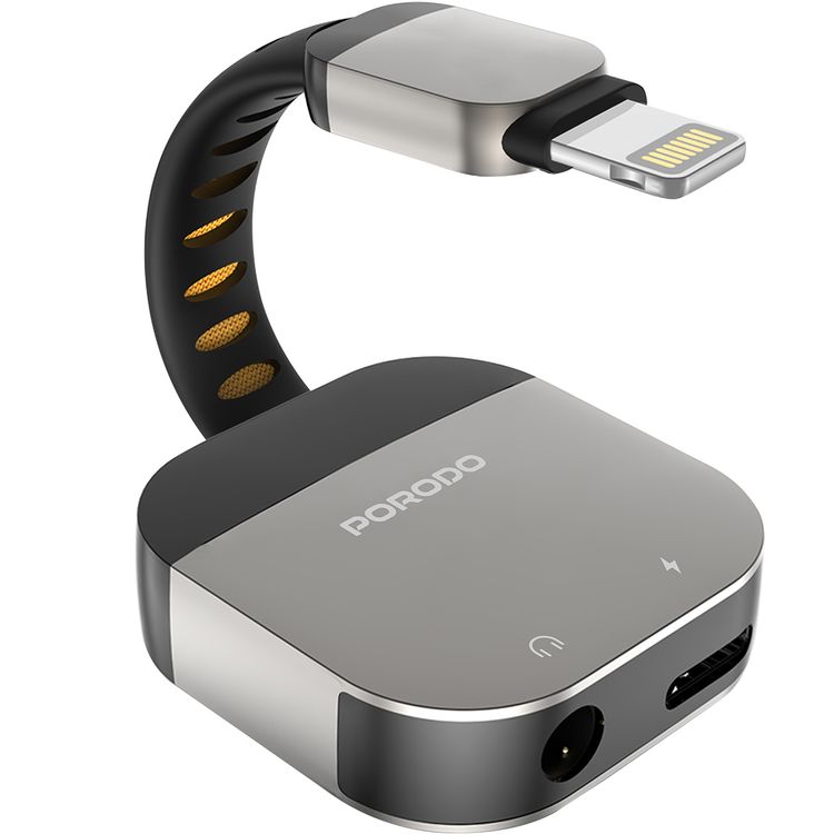 محول بورودو 2 في 1 من لايتنينغ إلى مقبس 3.5 ملم AUX مع توافق واسع، جودة صوت مع تقليل الضوضاء، قدرة شحن بقوة 10 واط، صوت ستيريو عالي الدقة، 16 بت/48 كيلو هرتز، مخرج صوت ستيريو 3.5 ملم - رمادي.