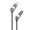 Porodo شاحن سريع 4 في 1 بسلك مع قدرة توصيل تصل إلى 60 واط، وطول كابل 1.2 متر، ومنفذي Type-C وLightning، متوافق عالميًا، كابل مضفر، ومدخلي USB-A وUSB-C.