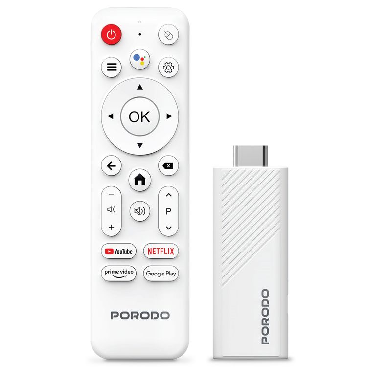 بورودو جهاز بث تلفزيوني ذكي بدقة 4K يعمل بنظام أندرويد مع منفذ HDMI، إصدار بلوتوث 5.0، أندرويد 14.0، تحكم صوتي ومساعد جوجل، أداء رباعي النواة، واي فاي مزدوج النطاق، تصميم جاهز للتوصيل والتشغيل - بالأبيض