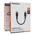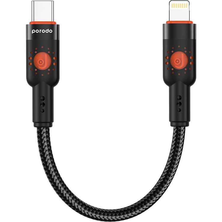كابل برودو مصنوع من سبائك الألومنيوم ومضفر، من نوع Type-C إلى Lightning بطول 25 سم، بقدرة PD 30W، وسرعة نقل تصل إلى 480 ميجابت في الثانية، وعمر افتراضي يزيد عن 15000 انحناء، مقاوم للتشابك - باللون الأسود.