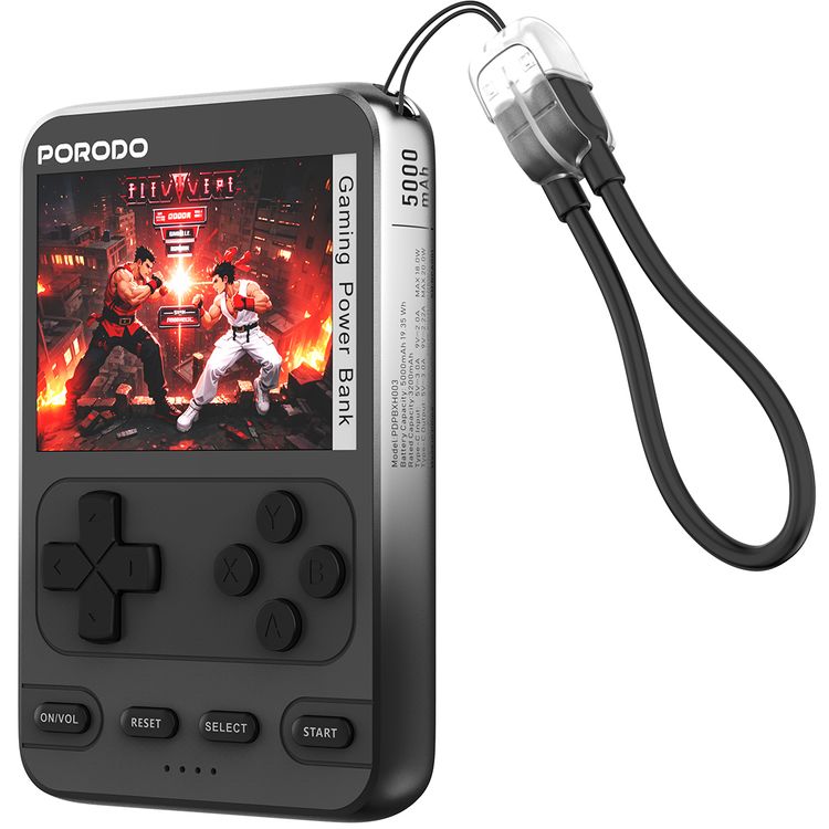 بنك طاقة بورودو أركيدفولت ماج سيف ٥٠٠٠ مللي أمبير/ساعة مع وحدة تحكم مدمجة، أكثر من ١٠٠ لعبة كلاسيكية، PD ٢٠ واط، شاشة عالية الدقة ٢.٨ بوصة، كابل USB-C - أسود