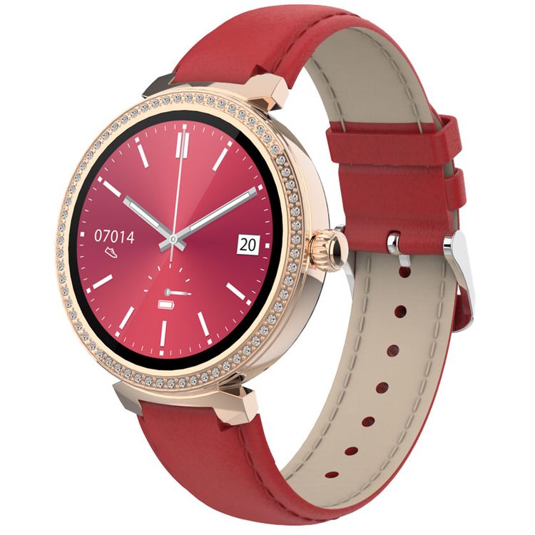 ساعة ذكية Porodo Belle Lady بمينا باللون الذهبي الوردي، وبلوتوث V5.4، وسبائك الزنك + مادة ABS، وشاشة مقاس 1.19 بوصة، وشاشة AMOLED، ومتتبع النشاط - أحمر