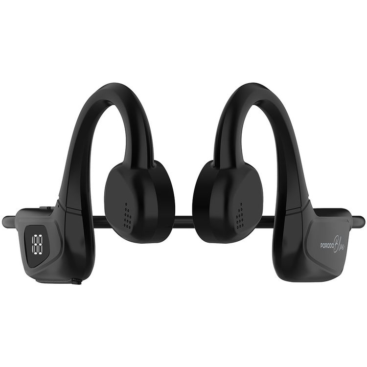 سماعة بورودو بتقنية توصيل الصوت عبر العظام اللاسلكية باللون الأزرق مع مؤشر LED، سعة بطارية 200mAh، منفذ شحن Type-C، وقت عمل 2.5 ساعة، 8 ساعات في وضع الاستعداد، تصميم مريح للأذن المفتوحة، خفيفة الوزن - لون أسود