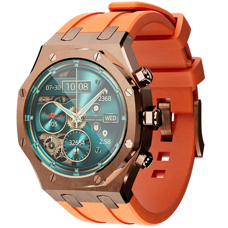 ساعة بورودو كريستالو إيه بي الذكية بحجم 49 ملم مع شاشة أموليد بحجم 1.43 بوصة ودقة 466x466 بكسل، وبطارية ليثيوم بوليمر بسعة 260 مللي أمبير في الساعة، وتقنية بلوتوث V3.0 و V5.0، ومعيار IP68، وذاكرة فلاش بسعة 128 ميجابايت، ووقت عمل من 7 إلى 15 يومًا - لون ذهبي وردي.