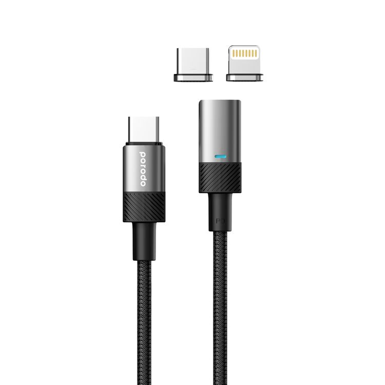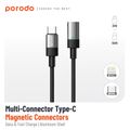 كابل Porodo متعدد الموصلات مع مخرجات Type-C و Lightning، طول 1.2 متر، إخراج Type-C بقوة 100 وات، وإخراج Lightning بقوة 30 وات، عمر يصل لأكثر من 15000 انحناءة، شحن سريع ومزامنة بيانات - اللون الأسود.