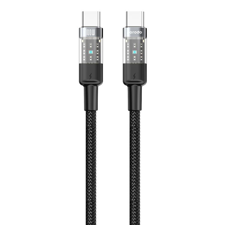 سلك Porodo مضفر من USB-C إلى USB-C بقدرة توصيل تصل إلى 100 واط، يتحمل أكثر من 15000 انحناء، غير قابل للتشابك، مكونات عالية الجودة، بطول 1.2 م - أسود
