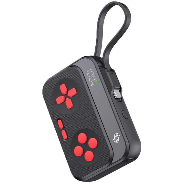 بورودو جيمينج باور بانك بسعة 10000mAh بتصميم وحدة تحكم، PD بقوة 20 واط، كابل مدمج من النوع C، منفذ USB-A واحد ومنفذ USB-C واحد، حبل كابل، شاشة رقمية - أسود / أحمر