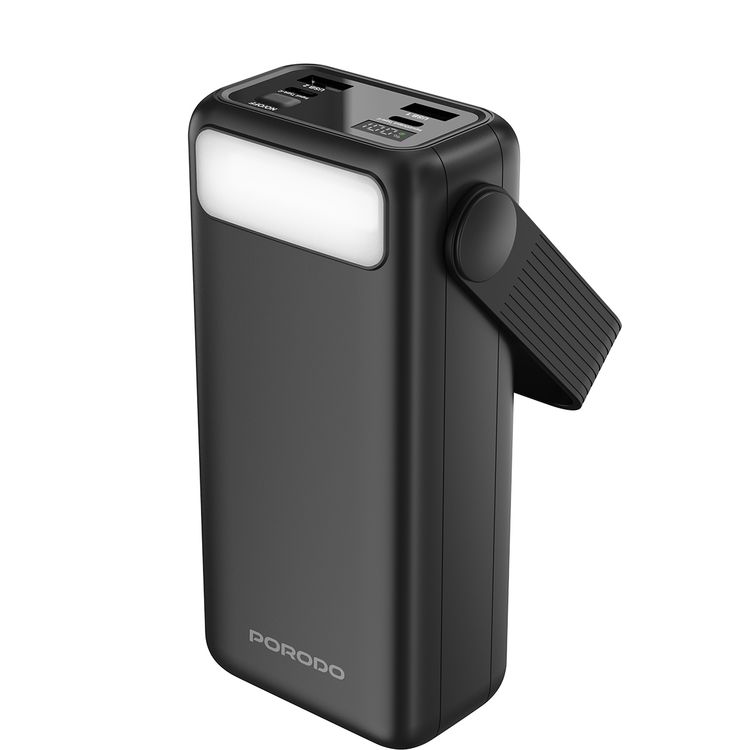 باور بانك بورودو لارا 30000 مللي أمبير/ساعة مع مصباح يدوي، مقبض محمول، PD 20 وات، شحن سريع، منفذين USB-A وUSB-C وMicro، 4 كابلات مدمجة، توافق عالمي - أسود
