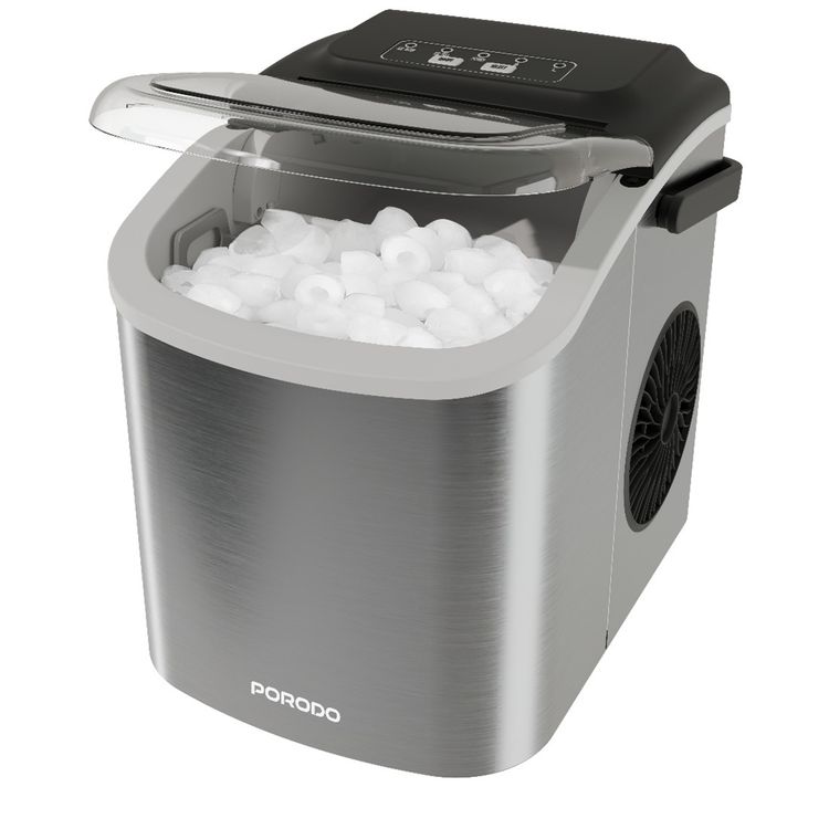 صانع الثلج الفوري بورودو لايفستايل بغطاء شفاف، إنتاج سريع للثلج، تصميم موفر للمساحة، لوحة تحكم سهلة الاستخدام، 12 كجم من الثلج في 24 ساعة، يتضمن ملعقة ثلج، سعة 0.6 كجم من الثلج - لون فضي
