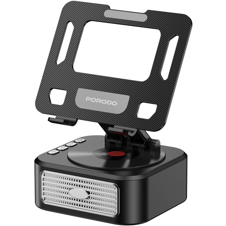 حامل مكبر صوت تابلت متعدد الوظائف من بورودو مع باور بانك، تشغيل USB/TF، سعة بطارية 1200 مللي أمبيرساعة، وقت تشغيل يصل إلى 3.5 ساعات، طاقة مقدرة 5 وات، مشغل مكبر صوت 40 مم، واجهة شحن USB-C، بلوتوث الإصدار 5.0، دوران 360 درجة، إمالة وتدوير، زاوية رؤية مرنة - أسود