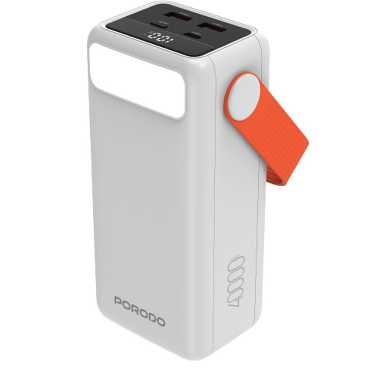 باور بانك بورودو بورتا باور 40000 مللي أمبير/ساعة مع إضاءة LED مدمجة، PD 20 واط، مخرج USB-A بحد أقصى 22.5 واط، مصباح يدوي، مقبض محمول، منافذ إخراج متعددة، ميزات حماية ذكية، شحن سريع - أبيض