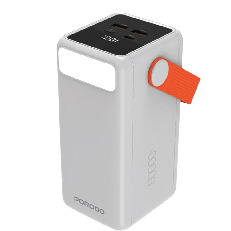باور بانك بورودو بورتا باور 60000 مللي أمبير/ساعة مع إضاءة LED مدمجة، PD 20 واط، مخرج USB-A بحد أقصى 22.5 واط، مصباح يدوي، مقبض محمول، منافذ إخراج متعددة، ميزات حماية ذكية، شحن سريع - أبيض