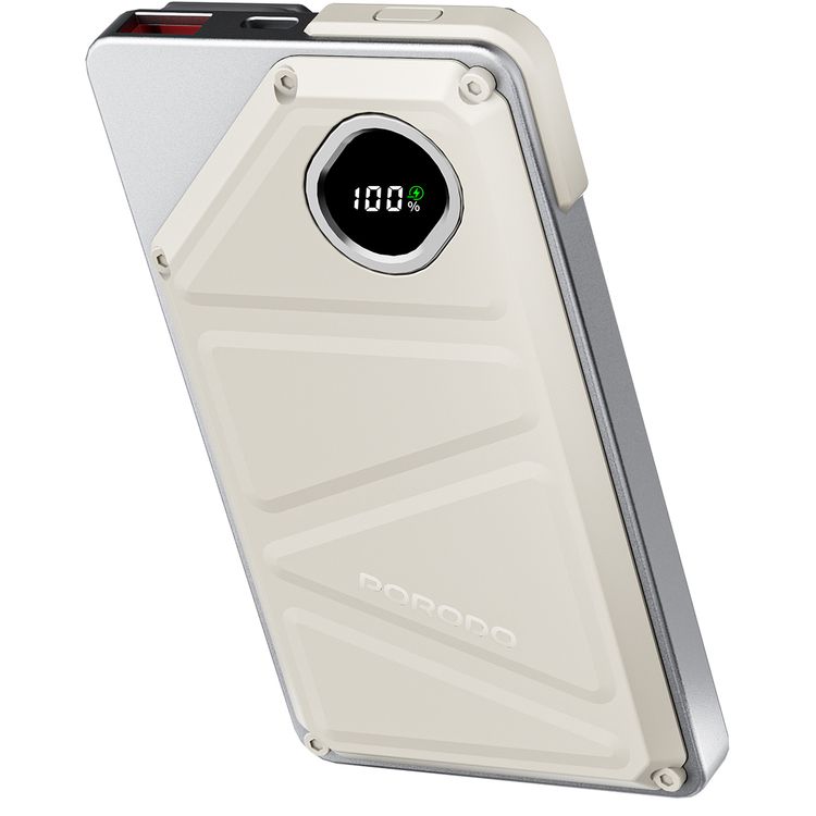 باور بانك بورودو 2x Type-C، بقدرة 10000 مللي أمبير، 2.4 أمبير لايتنينج، مخرج USB-A بقوة 22.5 وات، PD 20 وات، شاشة رقمية، شحن متزامن - أبيض