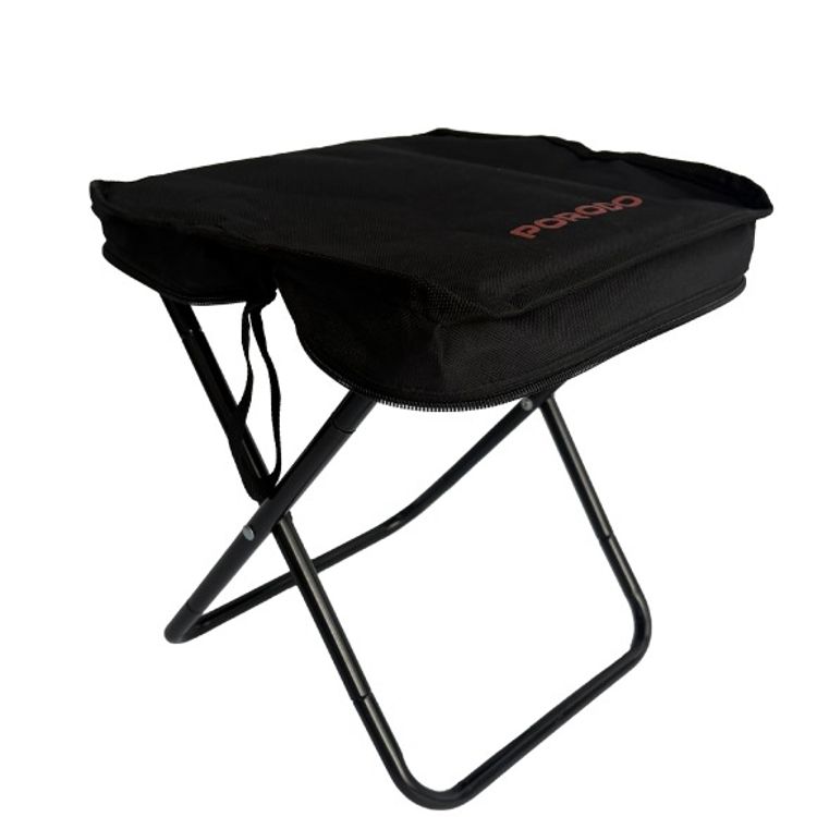 مقعد التخييم المحمول من بورودو قابل للطي بسرعة مع إطار X مستقر، سعة حمل تصل إلى 100 كجم، ارتفاع المقعد 32 سم، حجم مناسب للحقائب، وسهولة في التركيب بخطوة واحدة - أسود