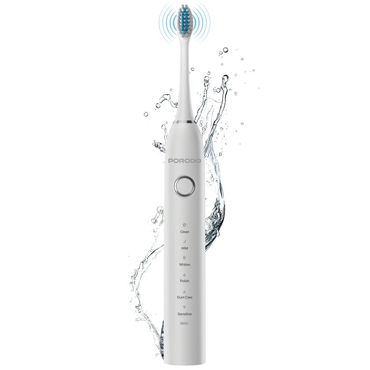 فرشاة الأسنان الكهربائية الذكية Porodo Lifestyle Smart Sonic مع وظيفة الذاكرة، 6 أوضاع تنظيف، حتى 30 يومًا من وقت العمل، بطارية 500 مللي أمبير، مستوى مقاومة للماء IPX7، واجهة شحن USB-C، شعيرات دوبونت، تنظيف صوتي قوي، مؤقت ذكي وتذكير - أبيض