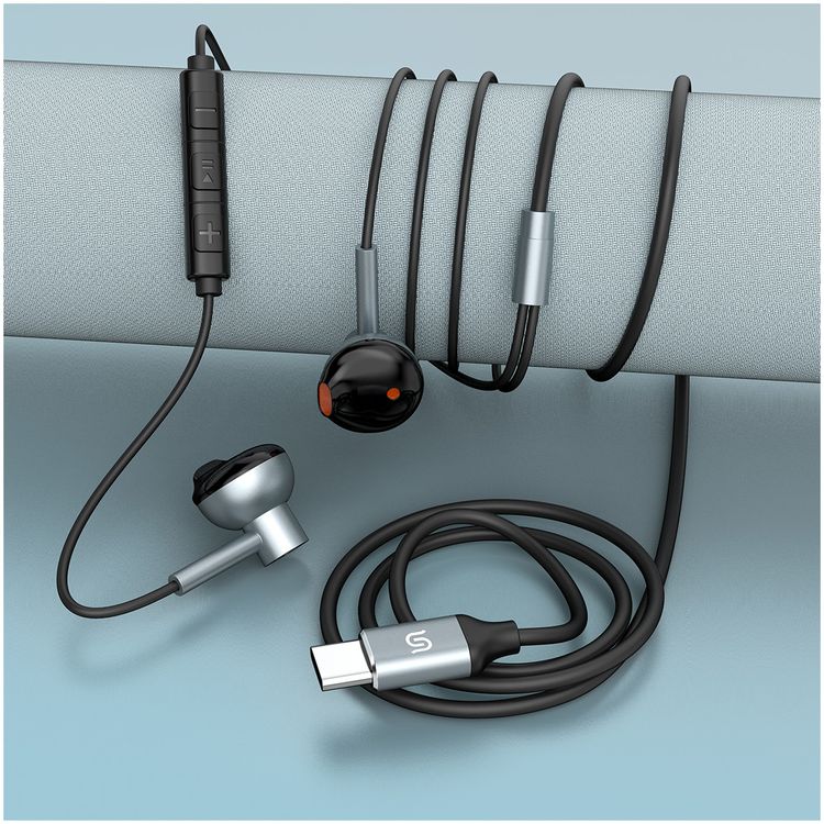 سماعات بورودو ساوندتيك ستيريو مع ميكروفون عالي الوضوح، صوت نقي، موصل Type-C، الرد على المكالمات وإغلاقها، تحكم بثلاثة أزرار - أسود