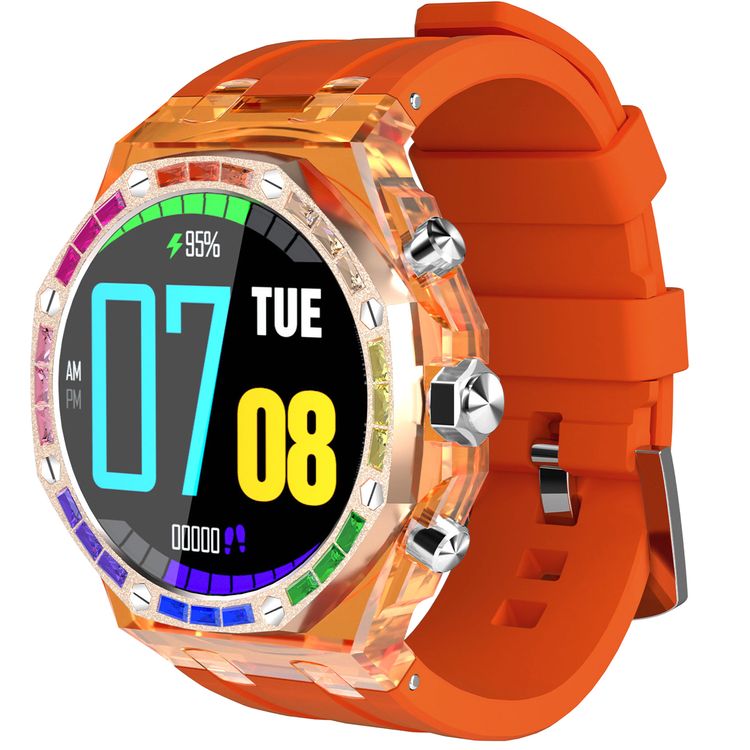 ساعة ذكية Porodo Transparent Cristallo AP، شاشة AMOLED، حجم الشاشة 1.43 بوصة، ذاكرة 128 ميجا بايت، بطارية ليثيوم بوليمر 260 مللي أمبير، IP67، مكالمات بلوتوث، متتبع النشاط، مراقبة الصحة - برتقالي