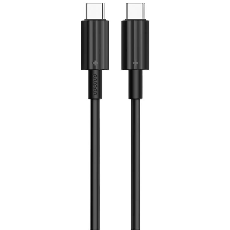 كابل Porodo USB-C إلى USB-C من PVC بسرعة نقل 480 ميجابت في الثانية، توفير طاقة 60 واط، عمر افتراضي لأكثر من 15000 انحناء، طول الكابل 1.2 متر، مقاوم للتشابك - أسود