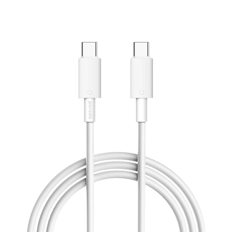 كابل بورودو من النوع C إلى C PVC بطول 3 متر، سرعة نقل 480 ميجابت في الثانية، PD 60 وات، عمر افتراضي يزيد عن 15000 ثنية، خالٍ من التشابك - أبيض