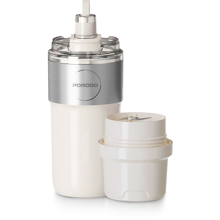 كوب خلاط ستانلس ستيل معزول بالفراغ من بورودو مع قدرة قوية على سحق الثلج، غطاء شرب آمن، سعة بطارية 2×1300 مللي أمبير، شحن سريع من نوع C، غطاء مزدوج قابل للتبديل، 26 شفرة، سعة 320 مل، سرعة محرك 18500 دورة في الدقيقة، يحافظ على السخونة والبرودة لمدة تصل إلى 6 ساعات، مصنوع من الفولاذ المقاوم للصدأ 304 - أبيض.