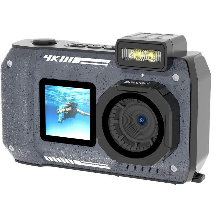 كاميرا رقمية مقاومة للماء من Porodo بشاشة مزدوجة، 48 ميجابكسل، شاشة رئيسية بحجم 2.88 بوصة، شاشة ثانوية بحجم 1.44 بوصة، عدسة زوم 18x، 20 فلتر جمالي، فيديو 4K، مقاومة للماء بمعيار IP68، سعة بطارية 2500 مللي أمبير - لون أسود
