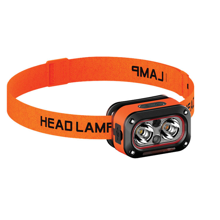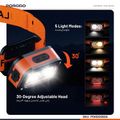بورودو كشاف رأس LED قابل لإعادة الشحن مع مستشعر الموجات، 5 أوضاع للضوء، بطارية 800mAh، يصل إلى 6 ساعات من التشغيل، نطاق استشعار 10 سم، رباط رأس مطاطي قابل للتعديل - برتقالي