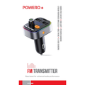 Powero + FM Transmitter Car Charger 2.4A 18W مع ميكروفون مدمج وإضاءة RGB - طقم سيارة للاتصال بدون استخدام اليدين - محول طاقة السيارة للشحن السريع PD مع فتحة بطاقة Micro SD - أسود