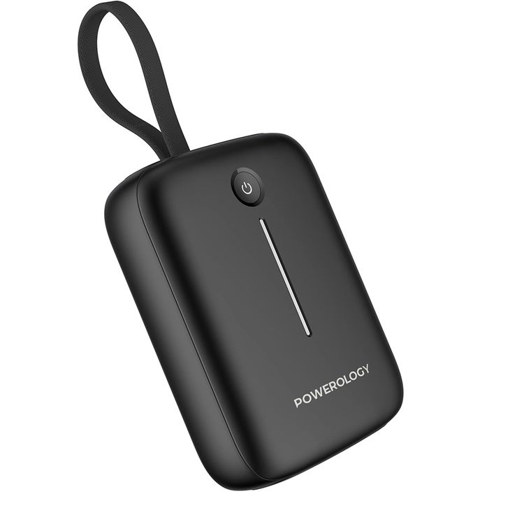 باور بانك 10000 مللي أمبير في الساعة من باورولوجي مع سلك USB-C قابل للفصل، وتوصيل طاقة بقوة 20 وات، وشحن 3 أجهزة، ووضع استعداد طويل الأمد، وتوافق عالمي مع الهواتف، وضمانات مدمجة - أسود