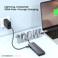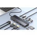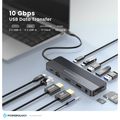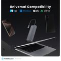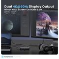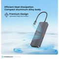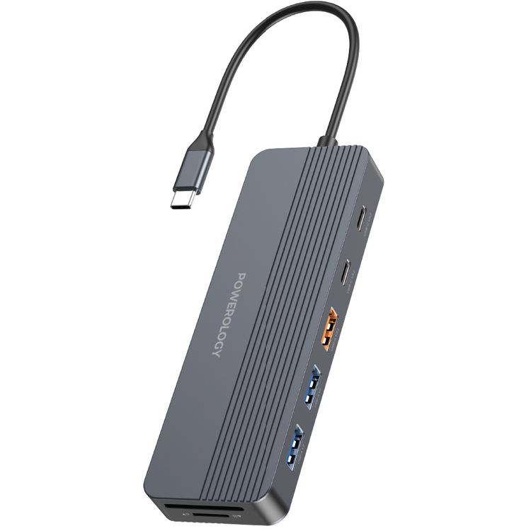 باورولوجي محور USB-C متعدد المنافذ 12 في 1 مع وضع عرض متعدد، توافق عالمي، شحن مرور، توصيل وتشغيل، مخرج فيديو مزدوج، تصميم مدمج من الألومنيوم.
