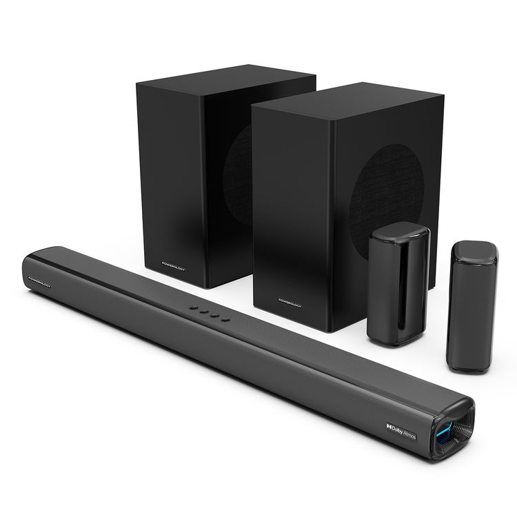 مكبر صوت مسرح منزلي Powerology 5.2.4CH مع Dolby Atmos، ومضخم صوت لاسلكي، ومدخل تلفزيون (ARC)، ومنفذ USB وAUX، وجهاز تحكم عن بعد، وشاشة LED - أسود