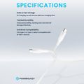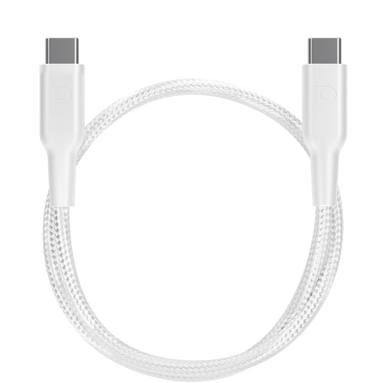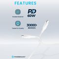 باورولوجي كابل مضفر من USB-C إلى USB-C مع توصيل طاقة 60 واط، بطول 30 سم، متوافق عالميًا، شحن سريع ونقل بيانات - أبيض.