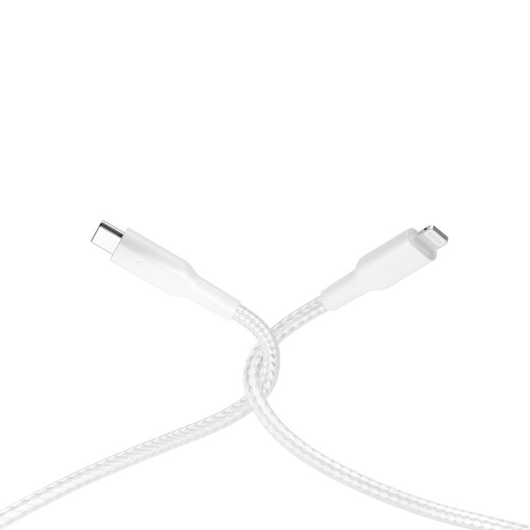 كابل باورولوجي مضفر من USB-C إلى لايتنينغ مع قدرة توصيل قدرة 60 واط، بطول كابل 2 متر، نقل بيانات سريع وشحن سريع، متوافق عالميًا - أبيض